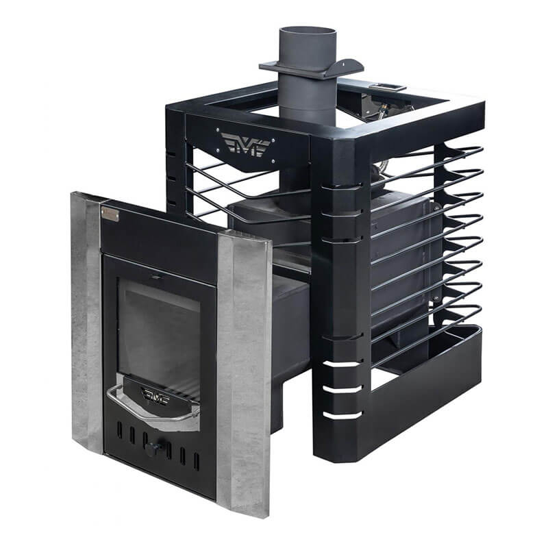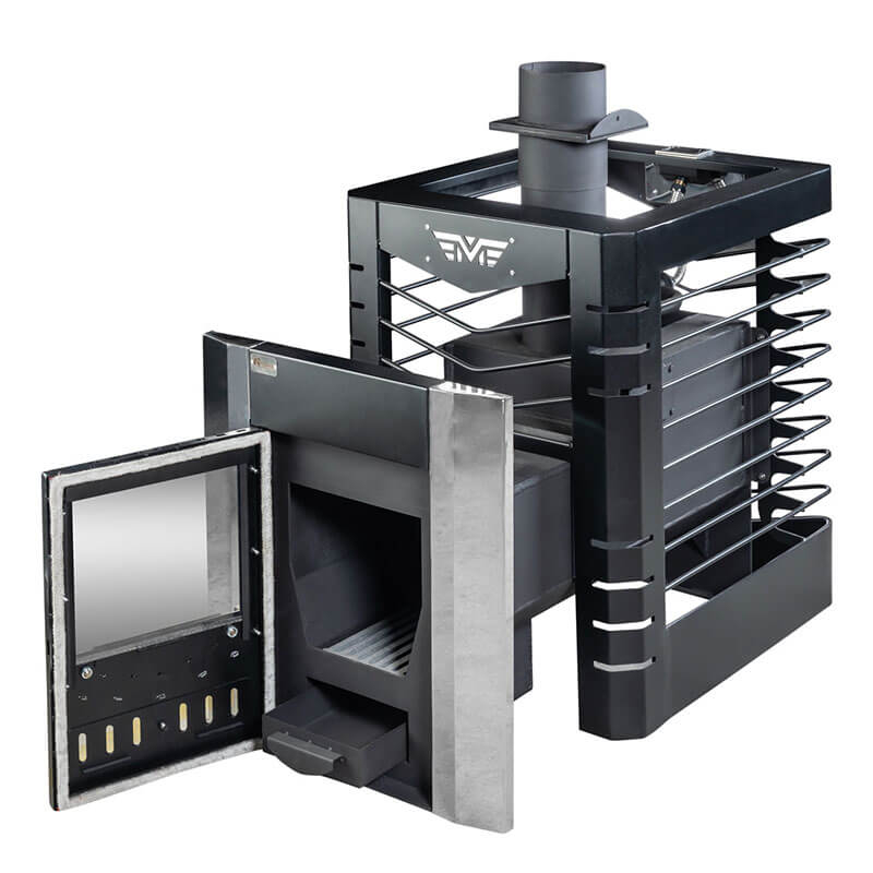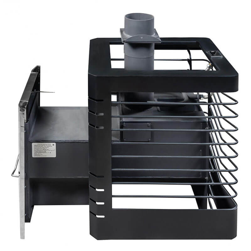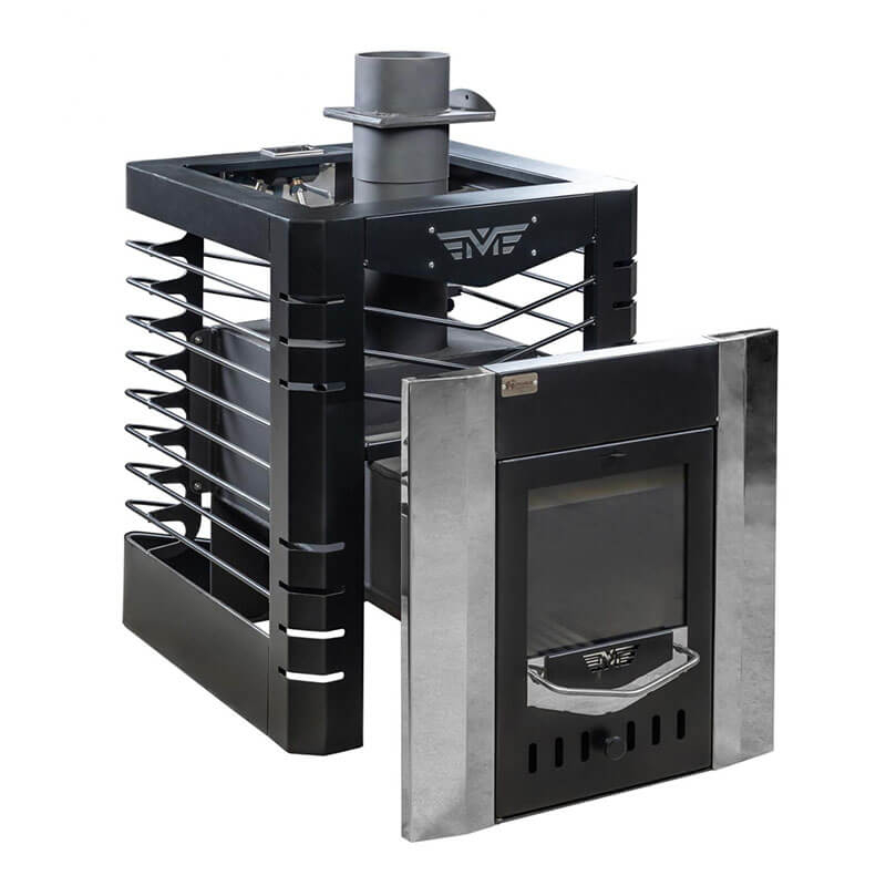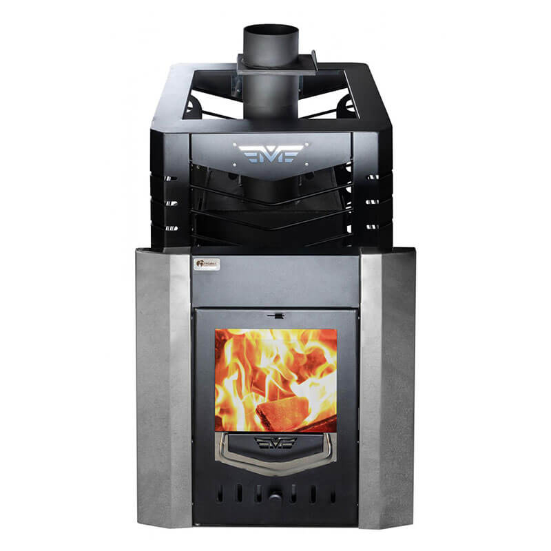 Объемная, открытая каменка позволяет скрывать инфракрасное излучение от нагретых стенок топки, а большое количество камней позволит получать большое количество пара, толстый металл топки и дымовых каналов обеспечит высокий ресурс печи (более 15 лет).