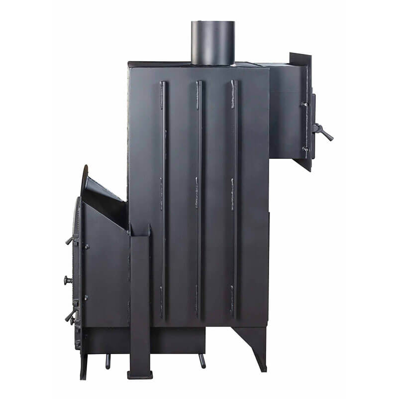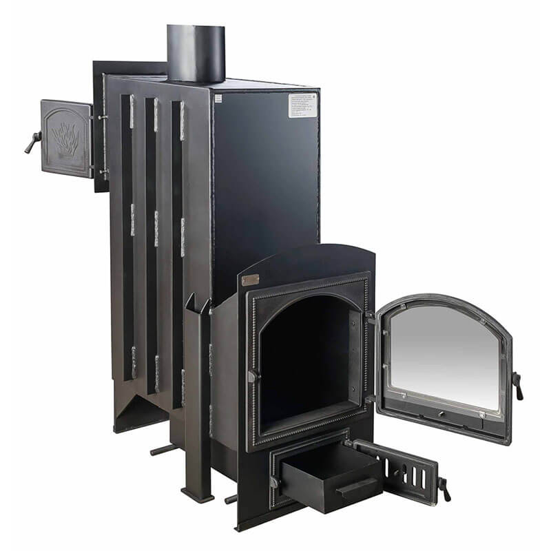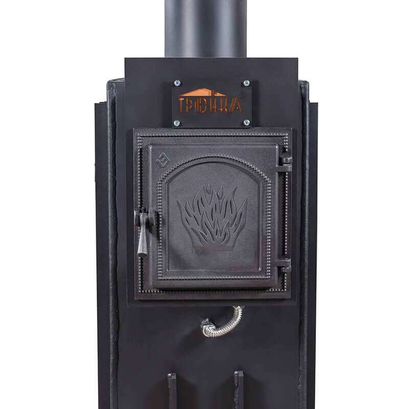 Объемная топка длиной 800 мм позволяет топить дровами до 750 мм.