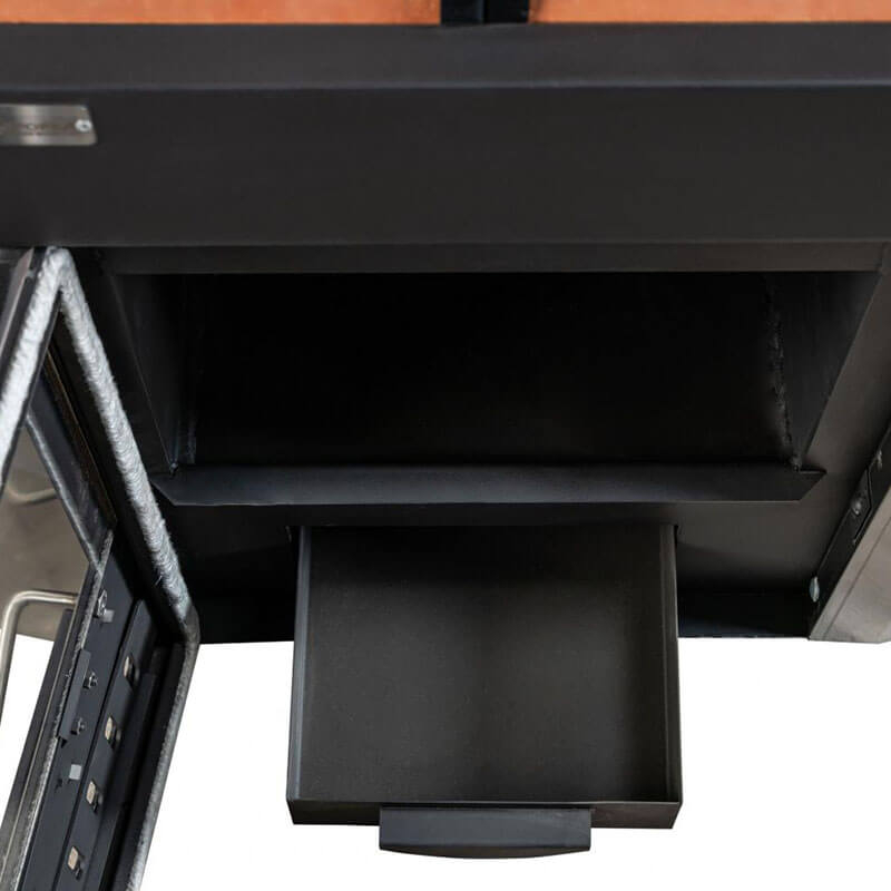 Объемная топка длиной 800 мм позволяет топить дровами до 750 мм.