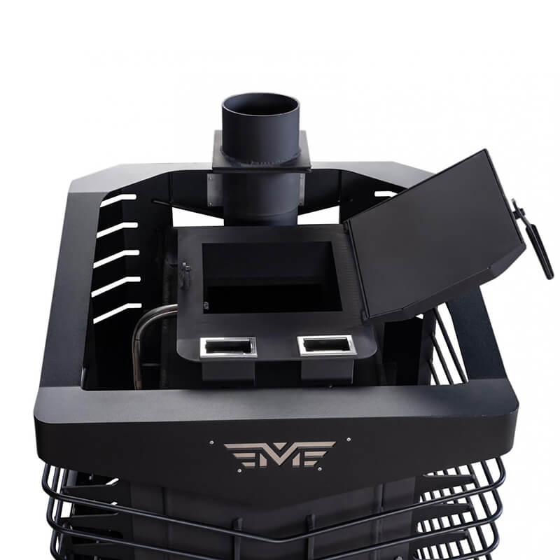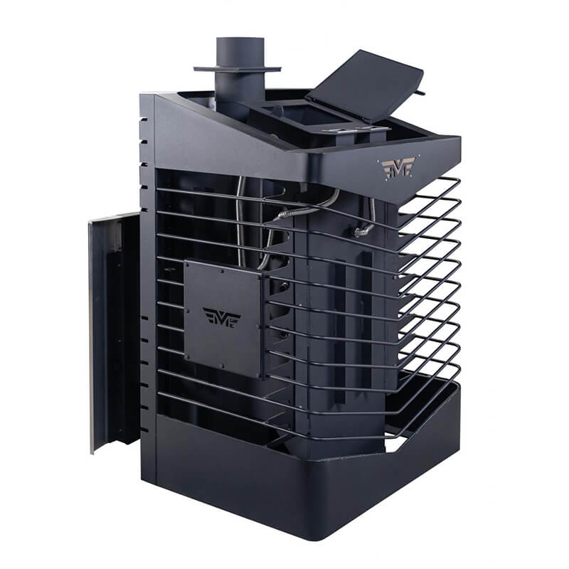 Объемная, не вентилируемая каменка позволяет получать большое количество пара, толстый металл топки и дымовых каналов обеспечит высокий ресурс печи (более 15 лет).