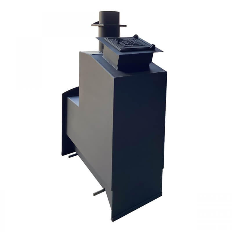Объемная, не вентилируемая каменка позволяет получать большое количество пара, толстый металл топки и дымовых каналов обеспечит высокий ресурс печи (более 15 лет).