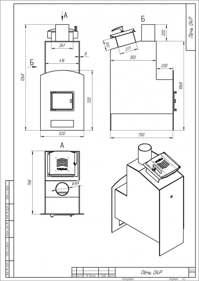 Печь для русской бани Тройка № 04Р (12 - 20 м3)
