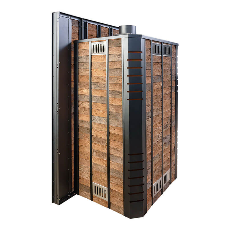 - Металлический каркас с конвекционными дверями для облицовки кирпичом в парном помещении.