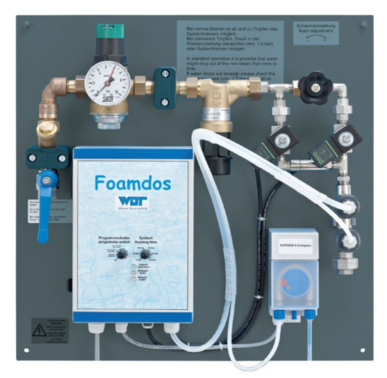 Дозирующая станция FOAMDOS, используя 3 компонента, а именно воду, воздух и пенный концентрат, производит пену, которая наносится на тело посетителей при массаже в турецкой бане.