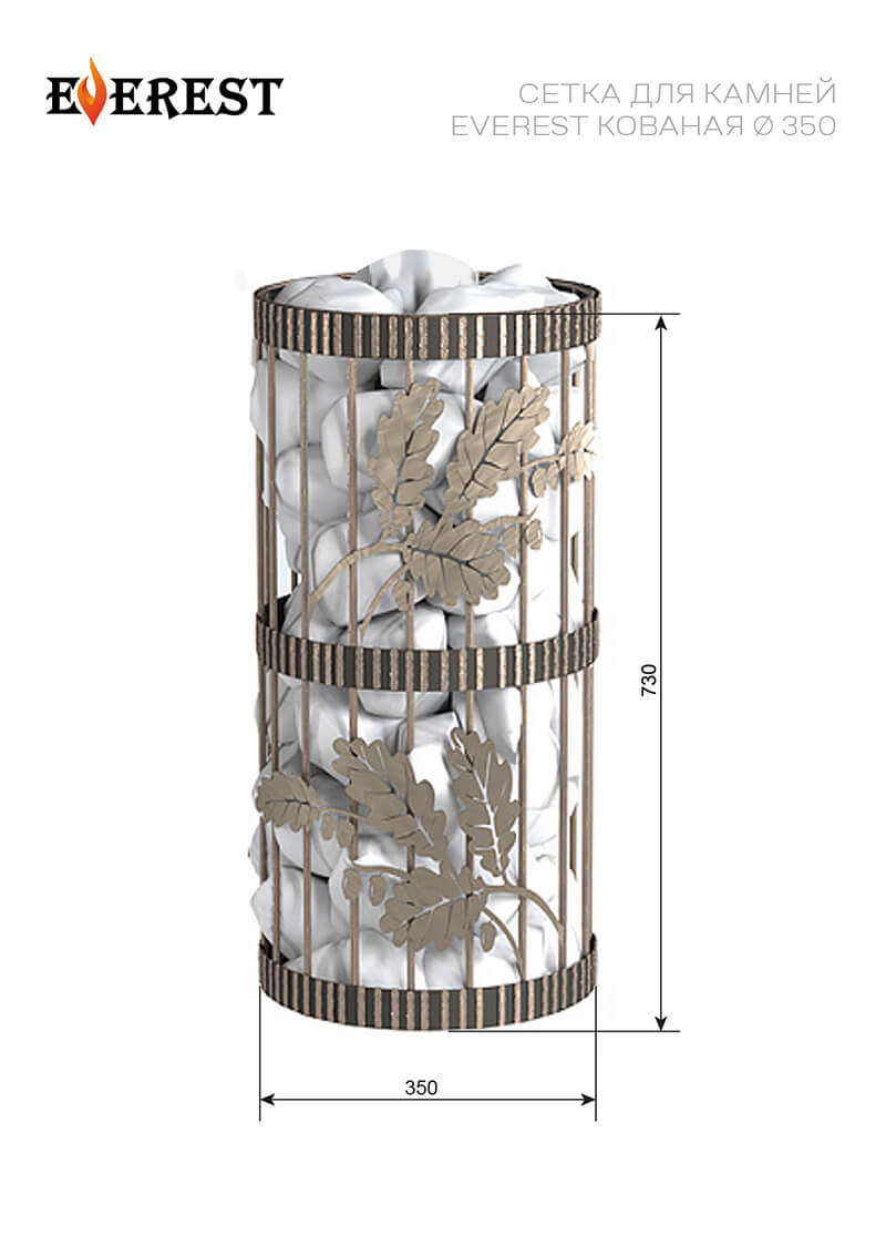 Сетка для камней Эверест Кованная Ø 350 один из важнейших элементов в парной, поскольку она позволяет убрать жесткое излучение, исходящее от раскаленного металла первой трубы.