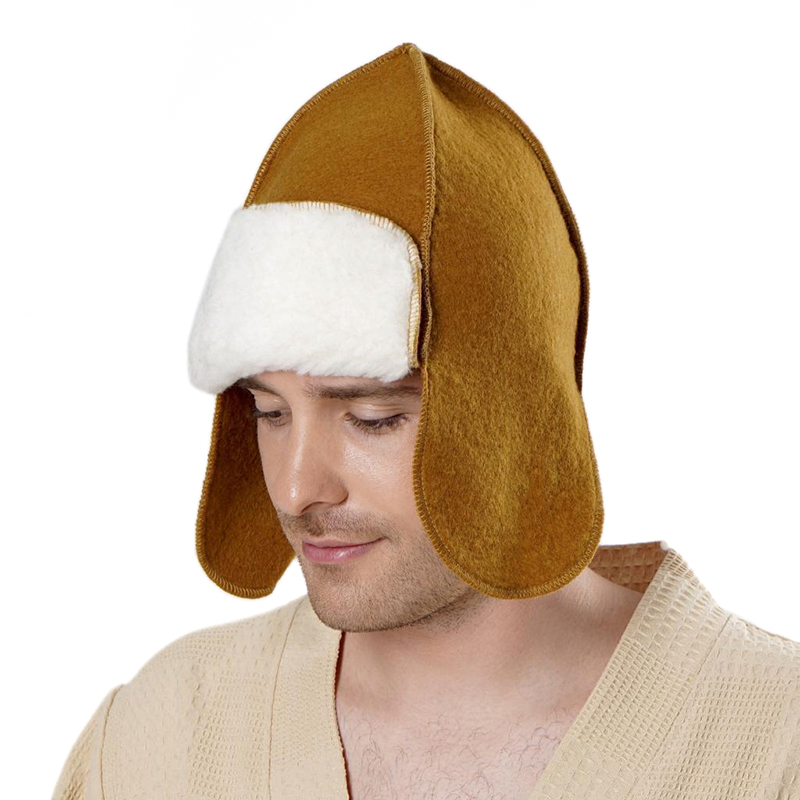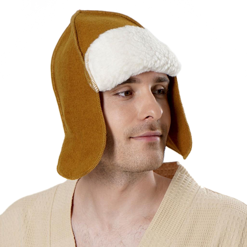 Шапка банная "Ушанка" из фетра, цвет Горчичный.