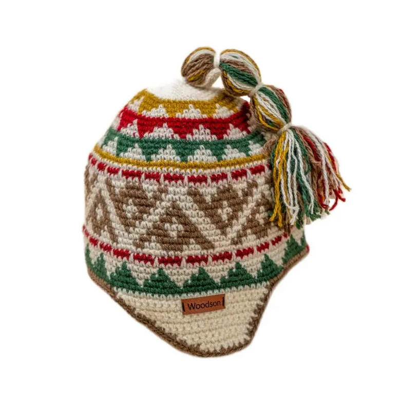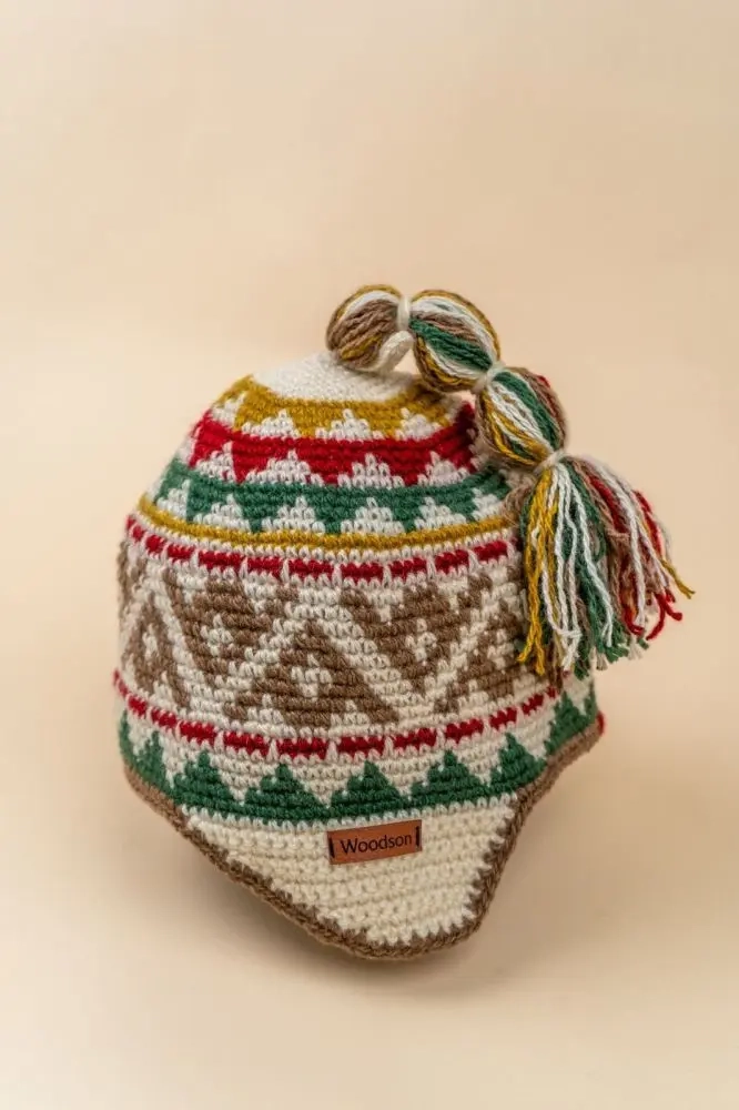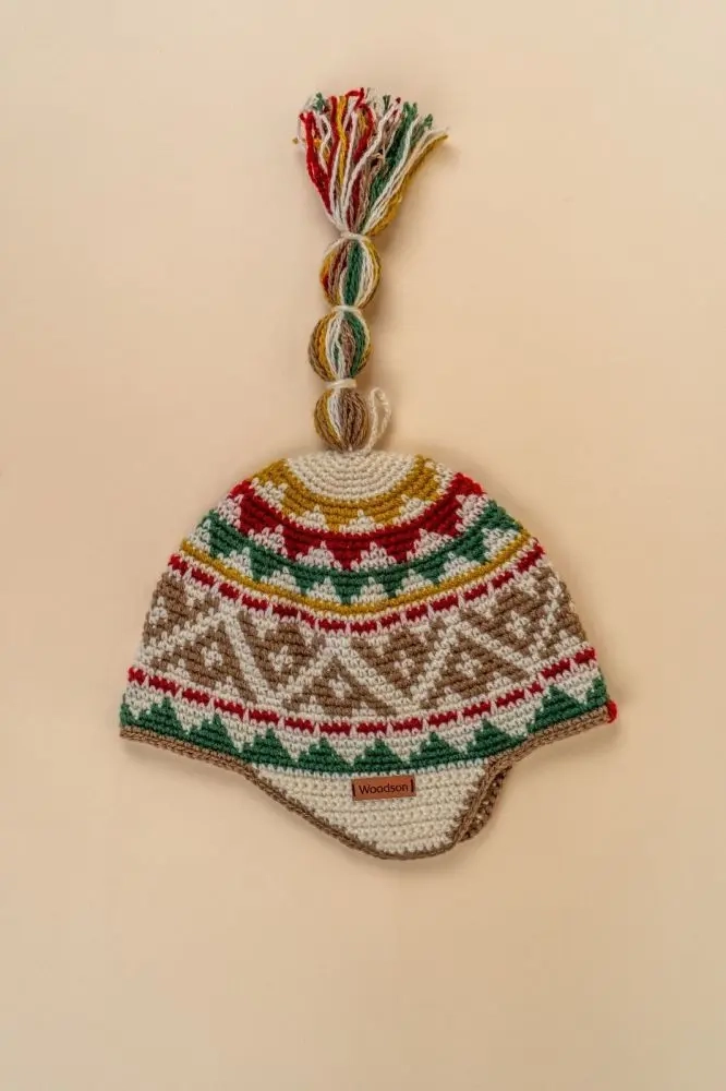 Шапка ручной работы с орнаментом в оттенке: молочный.