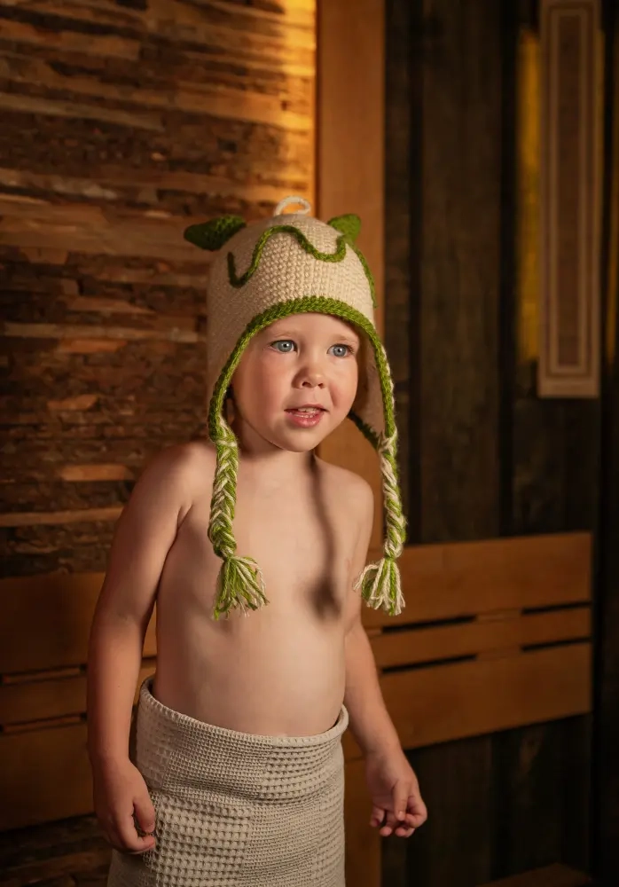 Шапочка связана из плотной 3-х нитки, что обеспечит защиту от перегрева головы в бане или сауне.
