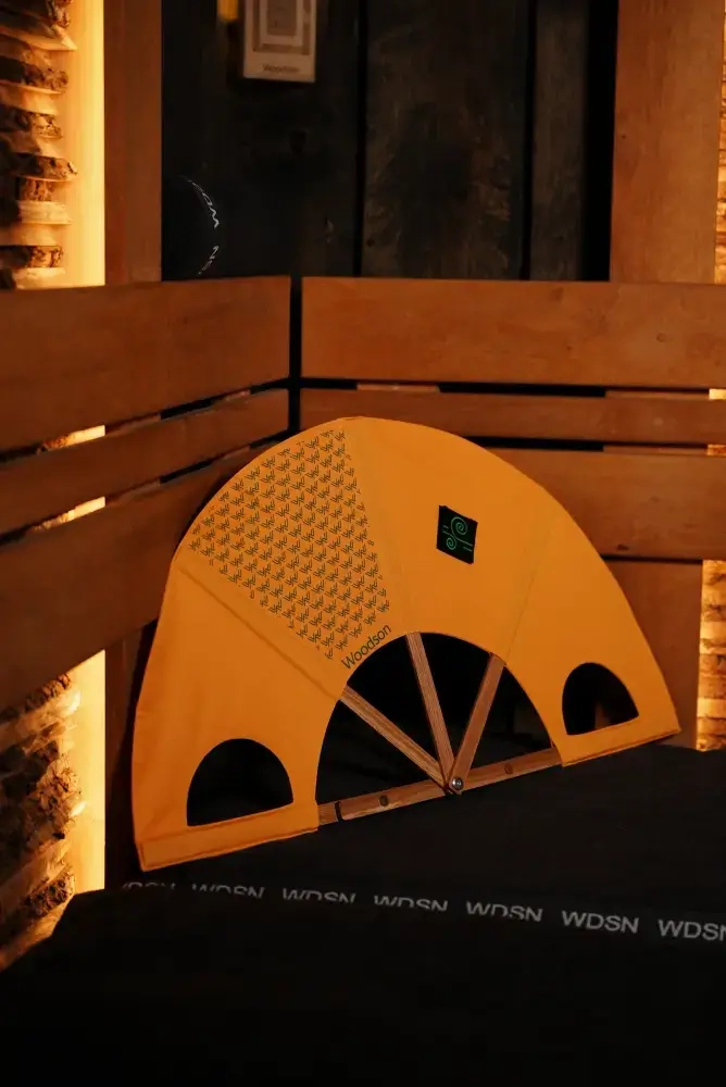 Веер выполнен из массива дуба и плотной износостойкой ткани — выглядит стильно и служит долго.